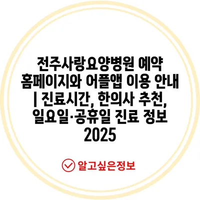 전주사랑요양병원 예약 홈페이지와 어플앱 이용 안내 | 진료시간, 한의사 추천, 일요일·공휴일 진료 정보 2025