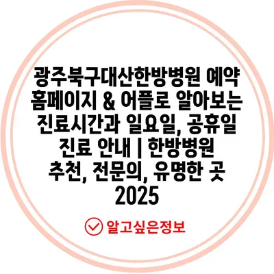 광주북구대산한방병원 예약 홈페이지 & 어플로 알아보는 진료시간과 일요일, 공휴일 진료 안내 | 한방병원 추천, 전문의, 유명한 곳 2025