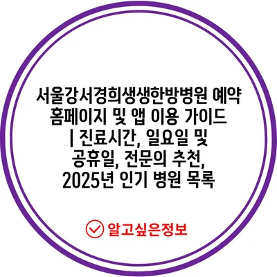 서울강서경희생생한방병원 예약 홈페이지 및 앱 이용 가이드 | 진료시간, 일요일 및 공휴일, 전문의 추천, 2025년 인기 병원 목록