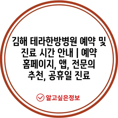 김해 테라한방병원 예약 및 진료 시간 안내 | 예약 홈페이지, 앱, 전문의 추천, 공휴일 진료