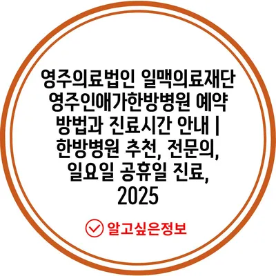영주의료법인 일맥의료재단 영주인애가한방병원 예약 방법과 진료시간 안내 | 한방병원 추천, 전문의, 일요일 공휴일 진료, 2025