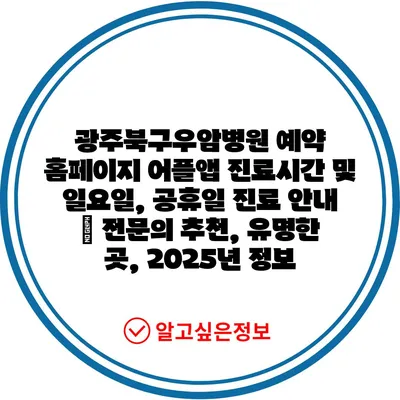 광주북구우암병원 예약 홈페이지 어플앱 진료시간 및 일요일, 공휴일 진료 안내 | 전문의 추천, 유명한 곳, 2025년 정보