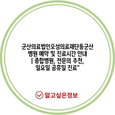 군산의료법인오성의료재단동군산병원 예약 및 진료시간 안내 | 종합병원, 전문의 추천, 일요일 공휴일 진료”