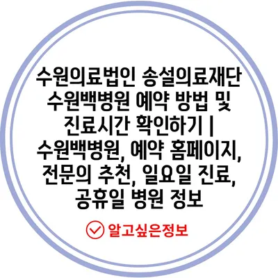 수원의료법인 송설의료재단 수원백병원 예약 방법 및 진료시간 확인하기 | 수원백병원, 예약 홈페이지, 전문의 추천, 일요일 진료, 공휴일 병원 정보