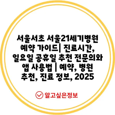 서울서초 서울21세기병원 예약 가이드| 진료시간, 일요일 공휴일 추천 전문의와 앱 사용법 | 예약, 병원 추천, 진료 정보, 2025