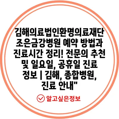 김해의료법인환명의료재단 조은금강병원 예약 방법과 진료시간 정리! 전문의 추천 및 일요일, 공휴일 진료 정보 | 김해, 종합병원, 진료 안내”