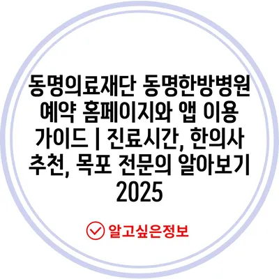 동명의료재단 동명한방병원 예약 홈페이지와 앱 이용 가이드 | 진료시간, 한의사 추천, 목포 전문의 알아보기 2025