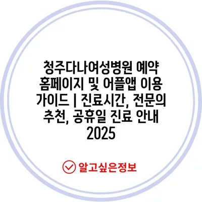 청주다나여성병원 예약 홈페이지 및 어플앱 이용 가이드 | 진료시간, 전문의 추천, 공휴일 진료 안내 2025