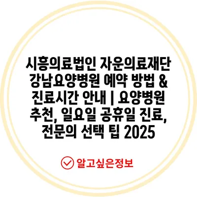 시흥의료법인 자운의료재단 강남요양병원 예약 방법 & 진료시간 안내 | 요양병원 추천, 일요일 공휴일 진료, 전문의 선택 팁 2025