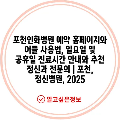 포천인화병원 예약 홈페이지와 어플 사용법, 일요일 및 공휴일 진료시간 안내와 추천 정신과 전문의 | 포천, 정신병원, 2025