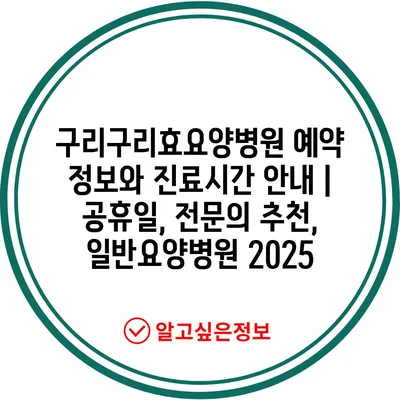 구리구리효요양병원 예약 정보와 진료시간 안내 | 공휴일, 전문의 추천, 일반요양병원 2025