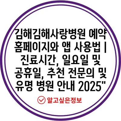 김해김해사랑병원 예약 홈페이지와 앱 사용법 | 진료시간, 일요일 및 공휴일, 추천 전문의 및 유명 병원 안내 2025″