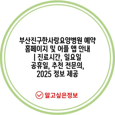 부산진구한사랑요양병원 예약 홈페이지 및 어플 앱 안내 | 진료시간, 일요일 공휴일, 추천 전문의, 2025 정보 제공