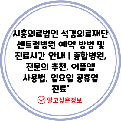 시흥의료법인 석경의료재단 센트럴병원 예약 방법 및 진료시간 안내 | 종합병원, 전문의 추천, 어플앱 사용법, 일요일 공휴일 진료”