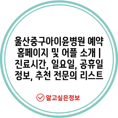울산중구아이윤병원 예약 홈페이지 및 어플 소개 | 진료시간, 일요일, 공휴일 정보, 추천 전문의 리스트