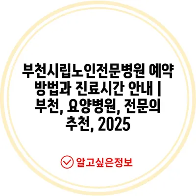부천시립노인전문병원 예약 방법과 진료시간 안내 | 부천, 요양병원, 전문의 추천, 2025