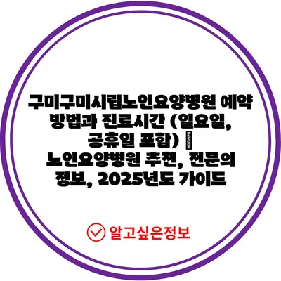 구미구미시립노인요양병원 예약 방법과 진료시간 (일요일, 공휴일 포함) | 노인요양병원 추천, 전문의 정보, 2025년도 가이드