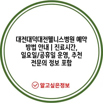 대전대덕대전웰니스병원 예약 방법 안내 | 진료시간, 일요일/공휴일 운영, 추천 전문의 정보 포함