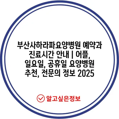부산사하라파요양병원 예약과 진료시간 안내 | 어플, 일요일, 공휴일 요양병원 추천, 전문의 정보 2025