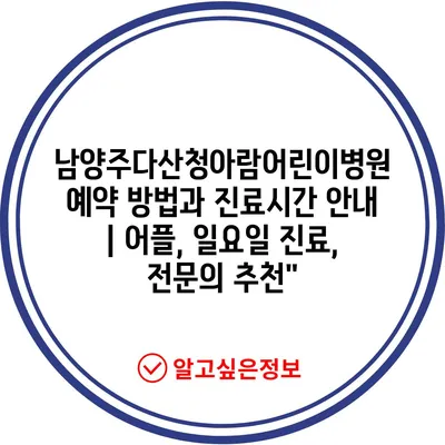 남양주다산청아람어린이병원 예약 방법과 진료시간 안내 | 어플, 일요일 진료, 전문의 추천”