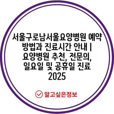 서울구로남서울요양병원 예약 방법과 진료시간 안내 | 요양병원 추천, 전문의, 일요일 및 공휴일 진료 2025