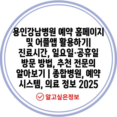 용인강남병원 예약 홈페이지 및 어플앱 활용하기| 진료시간, 일요일·공휴일 방문 방법, 추천 전문의 알아보기 | 종합병원, 예약 시스템, 의료 정보 2025