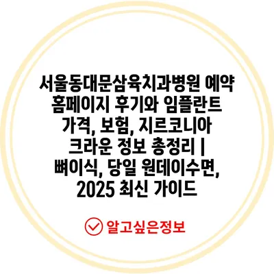 서울동대문삼육치과병원 예약 홈페이지 후기와 임플란트 가격, 보험, 지르코니아 크라운 정보 총정리 | 뼈이식, 당일 원데이수면, 2025 최신 가이드