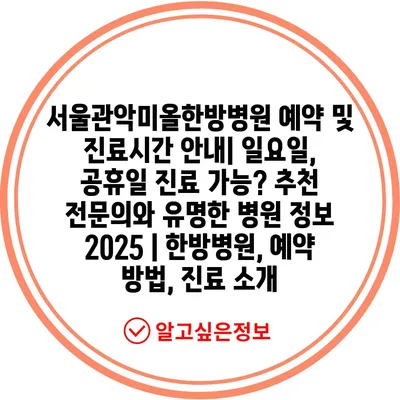 서울관악미올한방병원 예약 및 진료시간 안내| 일요일, 공휴일 진료 가능? 추천 전문의와 유명한 병원 정보 2025 | 한방병원, 예약 방법, 진료 소개