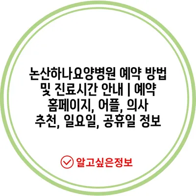 논산하나요양병원 예약 방법 및 진료시간 안내 | 예약 홈페이지, 어플, 의사 추천, 일요일, 공휴일 정보