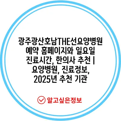 광주광산호남THE선요양병원 예약 홈페이지와 일요일 진료시간, 한의사 추천 | 요양병원, 진료정보, 2025년 추천 기관