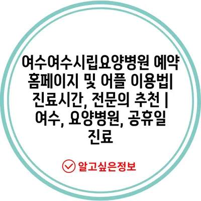 여수여수시립요양병원 예약 홈페이지 및 어플 이용법| 진료시간, 전문의 추천 | 여수, 요양병원, 공휴일 진료