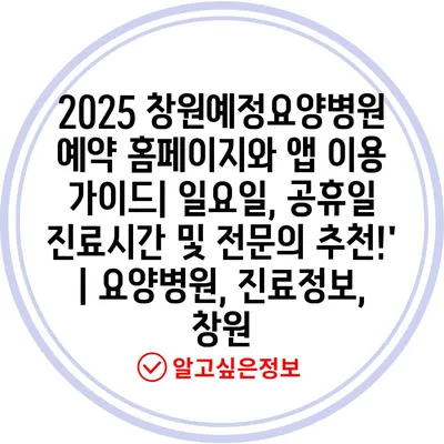 2025 창원예정요양병원 예약 홈페이지와 앱 이용 가이드| 일요일, 공휴일 진료시간 및 전문의 추천!’ | 요양병원, 진료정보, 창원