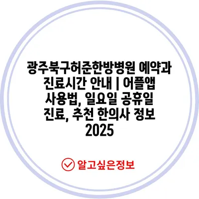 광주북구허준한방병원 예약과 진료시간 안내 | 어플앱 사용법, 일요일 공휴일 진료, 추천 한의사 정보 2025