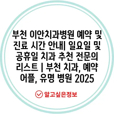 부천 이안치과병원 예약 및 진료 시간 안내| 일요일 및 공휴일 치과 추천 전문의 리스트 | 부천 치과, 예약 어플, 유명 병원 2025