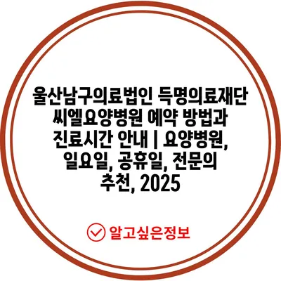 울산남구의료법인 득명의료재단 씨엘요양병원 예약 방법과 진료시간 안내 | 요양병원, 일요일, 공휴일, 전문의 추천, 2025