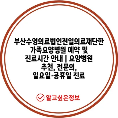 부산수영의료법인전일의료재단한가족요양병원 예약 및 진료시간 안내 | 요양병원 추천, 전문의, 일요일·공휴일 진료