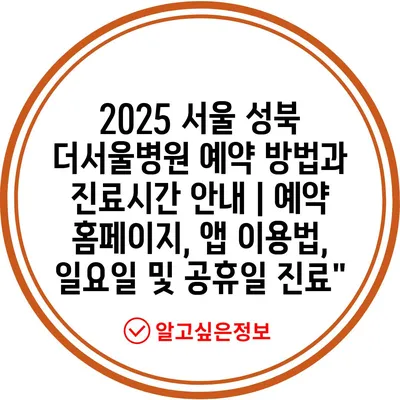 2025 서울 성북 더서울병원 예약 방법과 진료시간 안내 | 예약 홈페이지, 앱 이용법, 일요일 및 공휴일 진료”