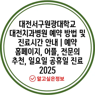 대전서구원광대학교 대전치과병원 예약 방법 및 진료시간 안내 | 예약 홈페이지, 어플, 전문의 추천, 일요일 공휴일 진료 2025