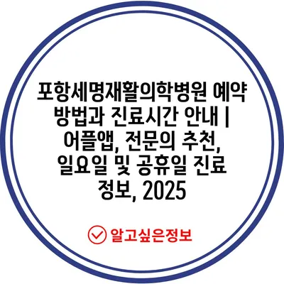포항세명재활의학병원 예약 방법과 진료시간 안내 | 어플앱, 전문의 추천, 일요일 및 공휴일 진료 정보, 2025