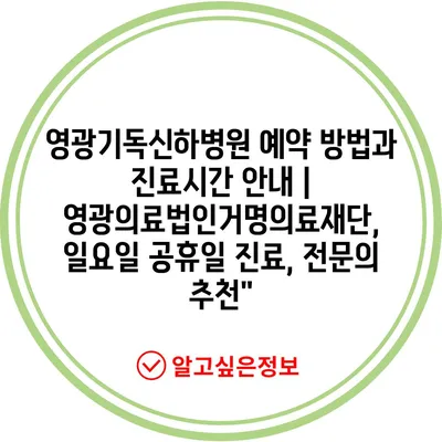 영광기독신하병원 예약 방법과 진료시간 안내 | 영광의료법인거명의료재단, 일요일 공휴일 진료, 전문의 추천”