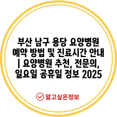 부산 남구 용당 요양병원 예약 방법 및 진료시간 안내 | 요양병원 추천, 전문의, 일요일 공휴일 정보 2025