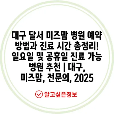 대구 달서 미즈맘 병원 예약 방법과 진료 시간 총정리! 일요일 및 공휴일 진료 가능 병원 추천 | 대구, 미즈맘, 전문의, 2025