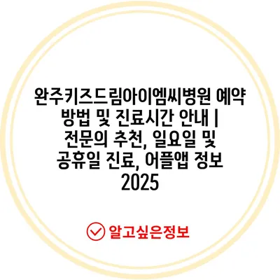 완주키즈드림아이엠씨병원 예약 방법 및 진료시간 안내 | 전문의 추천, 일요일 및 공휴일 진료, 어플앱 정보 2025