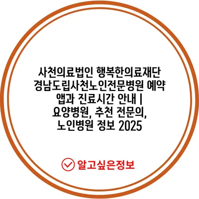 사천의료법인 행복한의료재단 경남도립사천노인전문병원 예약 앱과 진료시간 안내 | 요양병원, 추천 전문의, 노인병원 정보 2025