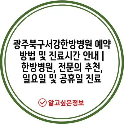 광주북구서강한방병원 예약 방법 및 진료시간 안내 | 한방병원, 전문의 추천, 일요일 및 공휴일 진료