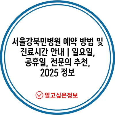 서울강북민병원 예약 방법 및 진료시간 안내 | 일요일, 공휴일, 전문의 추천, 2025 정보