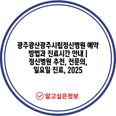 광주광산광주시립정신병원 예약 방법과 진료시간 안내 | 정신병원 추천, 전문의, 일요일 진료, 2025