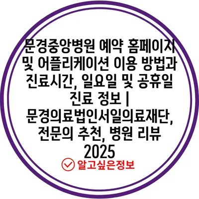 문경중앙병원 예약 홈페이지 및 어플리케이션 이용 방법과 진료시간, 일요일 및 공휴일 진료 정보 | 문경의료법인서일의료재단, 전문의 추천, 병원 리뷰 2025