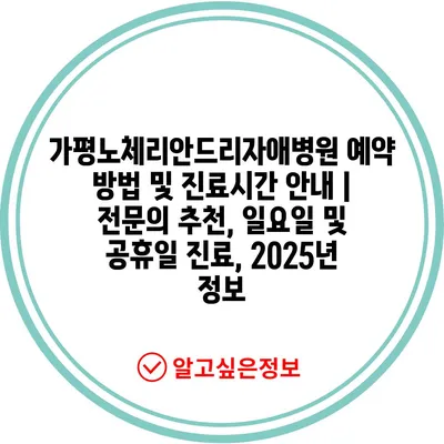 가평노체리안드리자애병원 예약 방법 및 진료시간 안내 | 전문의 추천, 일요일 및 공휴일 진료, 2025년 정보