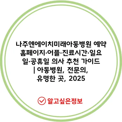 나주엔에이치미래아동병원 예약 홈페이지·어플·진료시간·일요일·공휴일 의사 추천 가이드 | 아동병원, 전문의, 유명한 곳, 2025